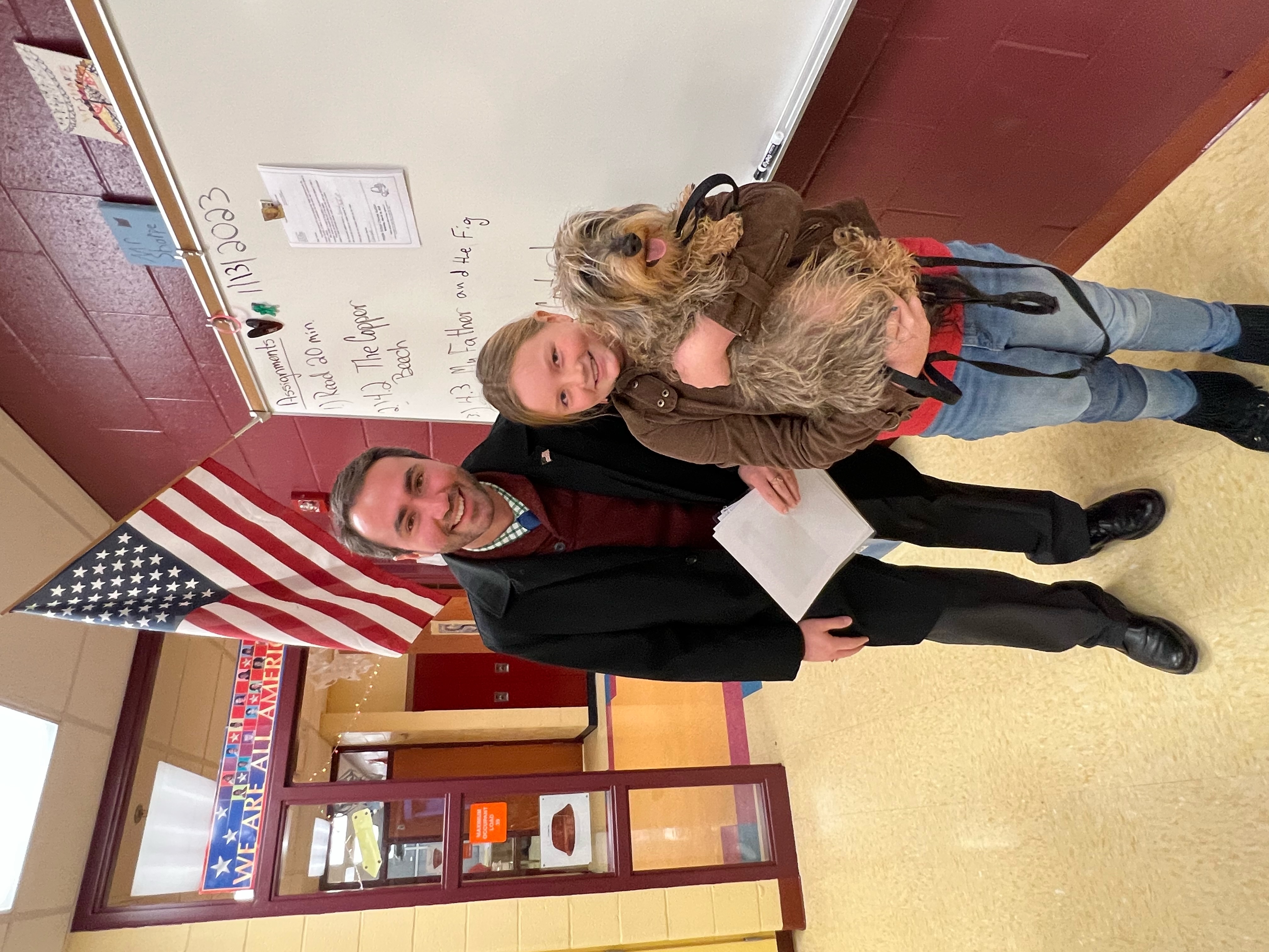 Juniper and Isabella got a visit from Auditor Thomas and Office Manager Sue Belden on Friday at their schools where they were presented a gift card and a certificate for a dog license paid for by Auditor Thomas. Juniper spoke in front of her class briefly about Walter, who had joined Thomas for the visit.