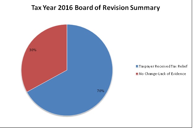 70% of complaints filed had results favorable to the taxpayer. These complaints provided sufficient evidence to support their claim and were approved by the board.