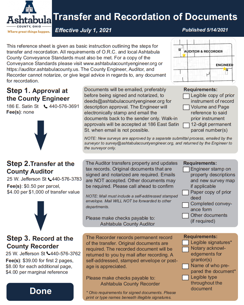 Effective July 1, 2021 the process to transfer property in Ashtabula County has changed These changes reflect best practice and a more efficient procedure.